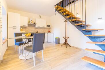 Haus bietet Platz für 3 Gäste. Die Betten sind in Schlafzimmern, die es 1 gibt, und in Wohnzimmer, innerhalb einer Gesamtfläche von 58m2, angeordnet. Die Gäste haben eine eigene Terrasse zur Verfügung, auf der sie in warmen Sommernächten genießen können. Für vollen Genuss und Entspannung gibt es einen privaten Grill für Gäste dieser Unterkunft. In der Unterkunftseinheit besteht die Möglichkeit des Mitbringens von Haustieren, und die Dienstleistung ist im Preis der Unterkunft enthalten.