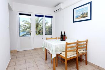 Ferienwohnung bietet Platz für 4 Gäste. Die Betten sind in Schlafzimmern, die es 2 gibt, innerhalb einer Gesamtfläche von 40m2, angeordnet. Die Gäste haben einen eigenen Balkon zur Verfügung, auf der sie in warmen Sommernächten genießen können. Das Apartment bietet Meerblick. Es ist erlaubt, Speisen auf dem Gemeinschafts-Grill vorzubereiten.