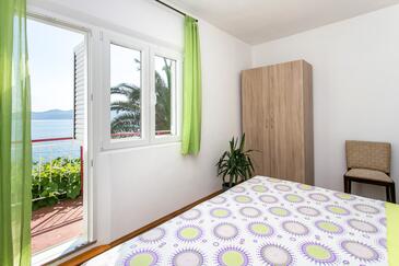 Ferienwohnung bietet Platz für 4 Gäste. Die Betten sind in Schlafzimmern, die es 2 gibt, innerhalb einer Gesamtfläche von 40m2, angeordnet. Die Gäste haben einen eigenen Balkon zur Verfügung, auf der sie in warmen Sommernächten genießen können. Das Apartment bietet Meerblick. Es ist erlaubt, Speisen auf dem Gemeinschafts-Grill vorzubereiten.