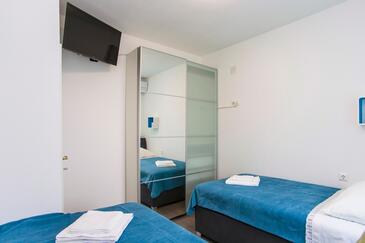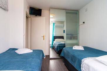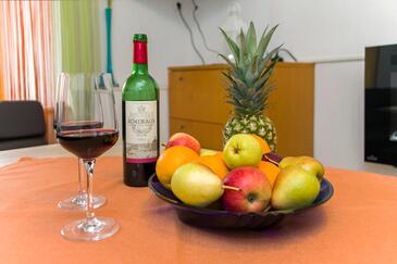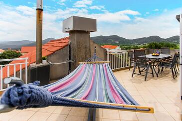 Haus bietet Platz für 8 Gäste. Die Betten sind in Schlafzimmern, die es 4 gibt, innerhalb einer Gesamtfläche von 129m2, angeordnet. Die Gäste haben eine eigene Terrasse zur Verfügung, auf der sie in warmen Sommernächten genießen können. Es ist erlaubt, Speisen auf dem Gemeinschafts-Grill vorzubereiten.