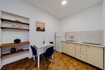 Ferienwohnung bietet Platz für 2 Gäste. Die Betten sind in Schlafzimmern, die es 1 gibt, innerhalb einer Gesamtfläche von 31m2, angeordnet. Die Gäste haben eine eigene Terrasse zur Verfügung, auf der sie in warmen Sommernächten genießen können. Das Apartment bietet Meerblick. Es ist erlaubt, Speisen auf dem Gemeinschafts-Grill vorzubereiten.