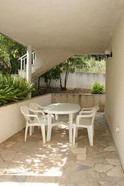 Ferienwohnung bietet Platz für 4 Gäste. Die Betten sind in Schlafzimmern, die es 3 gibt, innerhalb einer Gesamtfläche von 75m2, angeordnet. Die Gäste haben eine eigene Terrasse zur Verfügung, auf der sie in warmen Sommernächten genießen können. Das Apartment bietet Meerblick. Es ist erlaubt, Speisen auf dem Gemeinschafts-Grill vorzubereiten. In der Unterkunftseinheit besteht die Möglichkeit des Mitbringens von Haustieren gegen Aufpreis.