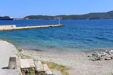 Ferienwohnung bietet Platz für 5 Gäste. Die Betten sind in Schlafzimmern, die es 2 gibt, innerhalb einer Gesamtfläche von 45m2, angeordnet. Die Gäste haben eine eigene Terrasse zur Verfügung, auf der sie in warmen Sommernächten genießen können. Das Apartment bietet Meerblick. Es ist erlaubt, Speisen auf dem Gemeinschafts-Grill vorzubereiten.