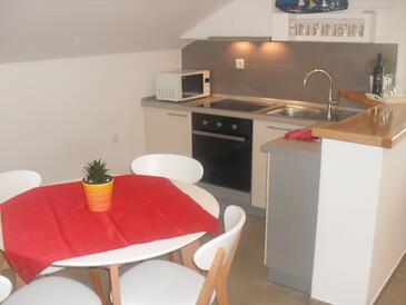 Ferienwohnung bietet Platz für 4 Gäste. Die Betten sind in Schlafzimmern, die es 1 gibt, und in Wohnzimmer, innerhalb einer Gesamtfläche von 43m2, angeordnet. Die Gäste haben eine eigene Terrasse zur Verfügung, auf der sie in warmen Sommernächten genießen können. Das Apartment bietet Meerblick. Für vollen Genuss und Entspannung gibt es einen privaten Grill für Gäste dieser Unterkunft. In der Unterkunftseinheit besteht die Möglichkeit des Mitbringens von Haustieren, und die Dienstleistung ist im Preis der Unterkunft enthalten.