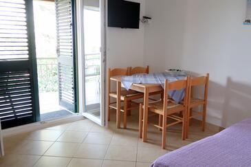 Ferienwohnung bietet Platz für 2 Gäste. Die Betten sind in Schlafzimmern, die es 1 gibt, innerhalb einer Gesamtfläche von 30m2, angeordnet. Die Gäste haben eine eigene Terrasse zur Verfügung, auf der sie in warmen Sommernächten genießen können. Das Apartment bietet Meerblick. Es ist erlaubt, Speisen auf dem Gemeinschafts-Grill vorzubereiten.