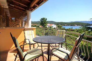 Ferienwohnung bietet Platz für 2 Gäste. Die Betten sind in Schlafzimmern, die es 1 gibt, innerhalb einer Gesamtfläche von 30m2, angeordnet. Die Gäste haben eine eigene Terrasse zur Verfügung, auf der sie in warmen Sommernächten genießen können. Das Apartment bietet Meerblick. Es ist erlaubt, Speisen auf dem Gemeinschafts-Grill vorzubereiten.