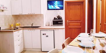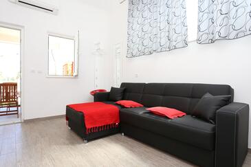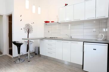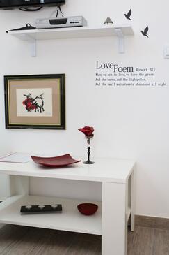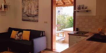 Ferienwohnung bietet Platz für 2 Gäste. Die Betten sind in Schlafzimmern, die es 1 gibt, innerhalb einer Gesamtfläche von 27m2, angeordnet. Die Gäste haben eine eigene Terrasse zur Verfügung, auf der sie in warmen Sommernächten genießen können. Das Apartment bietet Meerblick. Es ist erlaubt, Speisen auf dem Gemeinschafts-Grill vorzubereiten. In der Unterkunftseinheit besteht die Möglichkeit des Mitbringens von Haustieren gegen Aufpreis.