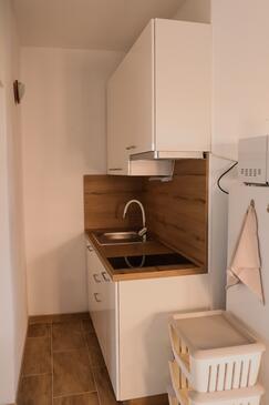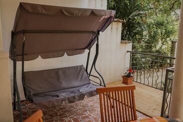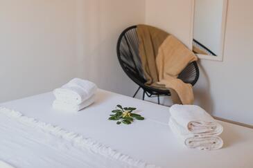 Ferienwohnung bietet Platz für 6 Gäste. Die Betten sind in Schlafzimmern, die es 2 gibt, und in Wohnzimmer, innerhalb einer Gesamtfläche von 43m2, angeordnet. Die Gäste haben eine eigene Terrasse zur Verfügung, auf der sie in warmen Sommernächten genießen können. Das Apartment bietet Meerblick. Es ist erlaubt, Speisen auf dem Gemeinschafts-Grill vorzubereiten.