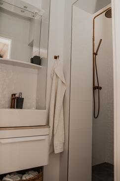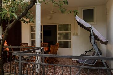 Ferienwohnung bietet Platz für 6 Gäste. Die Betten sind in Schlafzimmern, die es 2 gibt, und in Wohnzimmer, innerhalb einer Gesamtfläche von 43m2, angeordnet. Die Gäste haben eine eigene Terrasse zur Verfügung, auf der sie in warmen Sommernächten genießen können. Das Apartment bietet Meerblick. Es ist erlaubt, Speisen auf dem Gemeinschafts-Grill vorzubereiten.