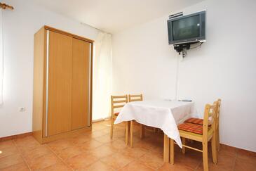 Studio bietet Platz für 4 Gäste. Die Betten sind in Schlafzimmern, die es 1 gibt, innerhalb einer Gesamtfläche von 39m2, angeordnet. Die Gäste haben eine eigene Terrasse zur Verfügung, auf der sie in warmen Sommernächten genießen können. Es ist erlaubt, Speisen auf dem Gemeinschafts-Grill vorzubereiten. In der gebuchten Unterkunftseinheit zahlt man am Ort ein Depositum ( der Preis ist an der Internetseite angeführt ).