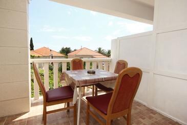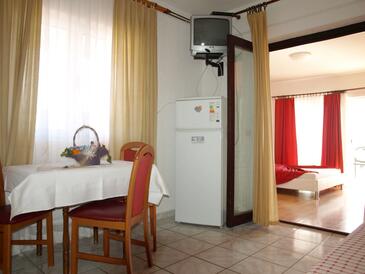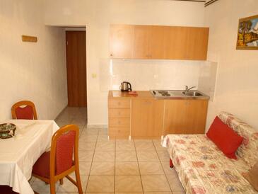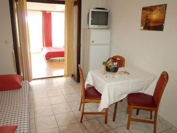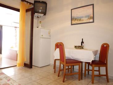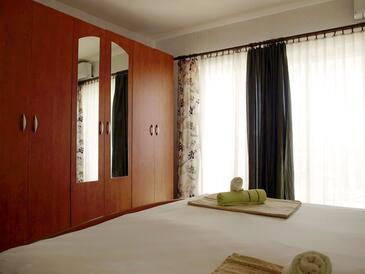 Ferienwohnung bietet Platz für 4 Gäste. Die Betten sind in Schlafzimmern, die es 1 gibt, und in Esszimmer, innerhalb einer Gesamtfläche von 31m2, angeordnet. Die Gäste haben eine eigene Terrasse zur Verfügung, auf der sie in warmen Sommernächten genießen können. Das Apartment bietet Meerblick. Es ist erlaubt, Speisen auf dem Gemeinschafts-Grill vorzubereiten.