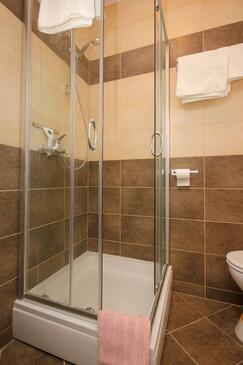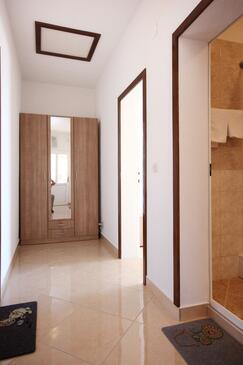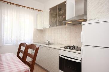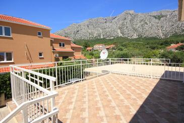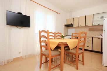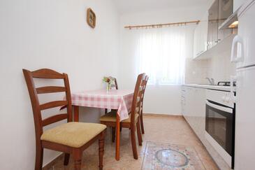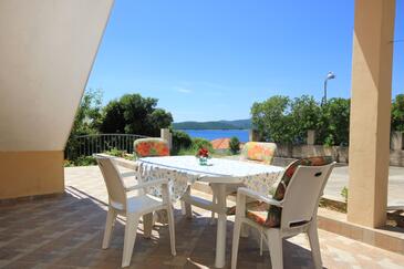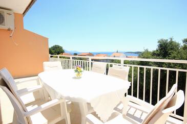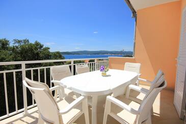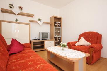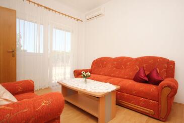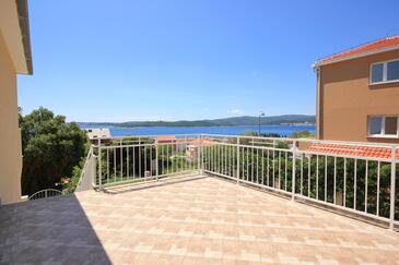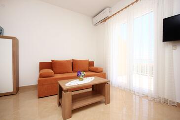 Ferienwohnung bietet Platz für 6 Gäste. Die Betten sind in Schlafzimmern, die es 2 gibt, und in Wohnzimmer, innerhalb einer Gesamtfläche von 57m2, angeordnet. Die Gäste haben eine eigene Terrasse zur Verfügung, auf der sie in warmen Sommernächten genießen können. Das Apartment bietet Meerblick. Es ist erlaubt, Speisen auf dem Gemeinschafts-Grill vorzubereiten.