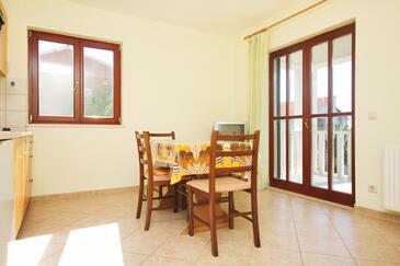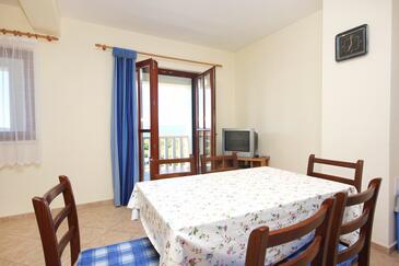 Ferienwohnung bietet Platz für 5 Gäste. Die Betten sind in Schlafzimmern, die es 2 gibt, und in Wohnzimmer, innerhalb einer Gesamtfläche von 58m2, angeordnet. Die Gäste haben eine eigene Terrasse zur Verfügung, auf der sie in warmen Sommernächten genießen können. Das Apartment bietet Meerblick. Es ist erlaubt, Speisen auf dem Gemeinschafts-Grill vorzubereiten.