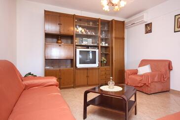Ferienwohnung bietet Platz für 6 Gäste. Die Betten sind in Schlafzimmern, die es 3 gibt, innerhalb einer Gesamtfläche von 91m2, angeordnet. Die Gäste haben eine eigene Terrasse zur Verfügung, auf der sie in warmen Sommernächten genießen können. Es ist erlaubt, Speisen auf dem Gemeinschafts-Grill vorzubereiten.
