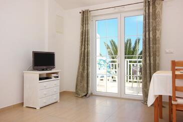 Ferienwohnung bietet Platz für 4 Gäste. Die Betten sind in Schlafzimmern, die es 1 gibt, und in Wohnzimmer, innerhalb einer Gesamtfläche von 38m2, angeordnet. Die Gäste haben eine eigene Terrasse zur Verfügung, auf der sie in warmen Sommernächten genießen können. Das Apartment bietet Meerblick.