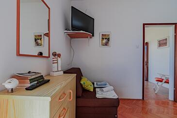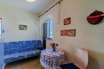 Ferienwohnung bietet Platz für 3 Gäste. Die Betten sind in Schlafzimmern, die es 1 gibt, und in Esszimmer, innerhalb einer Gesamtfläche von 38m2, angeordnet. Die Gäste haben eine eigene Terrasse zur Verfügung, auf der sie in warmen Sommernächten genießen können. Das Apartment bietet Meerblick. Es ist erlaubt, Speisen auf dem Gemeinschafts-Grill vorzubereiten. In der Unterkunftseinheit besteht die Möglichkeit des Mitbringens von Haustieren gegen Aufpreis.