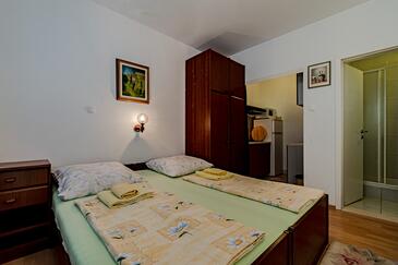 Studio bietet Platz für 2 Gäste. Die Betten sind in Schlafzimmern, die es 1 gibt, innerhalb einer Gesamtfläche von 18m2, angeordnet. Die Gäste haben eine eigene Terrasse zur Verfügung, auf der sie in warmen Sommernächten genießen können. Es ist erlaubt, Speisen auf dem Gemeinschafts-Grill vorzubereiten.