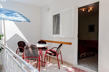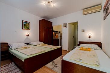 Studio bietet Platz für 2 Gäste. Die Betten sind in Schlafzimmern, die es 1 gibt, innerhalb einer Gesamtfläche von 18m2, angeordnet. Die Gäste haben eine eigene Terrasse zur Verfügung, auf der sie in warmen Sommernächten genießen können. Es ist erlaubt, Speisen auf dem Gemeinschafts-Grill vorzubereiten.