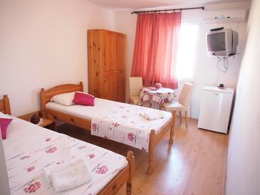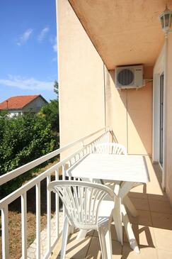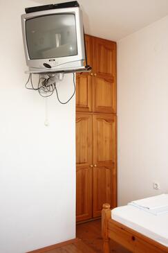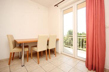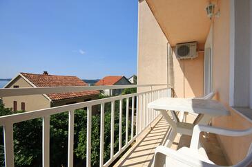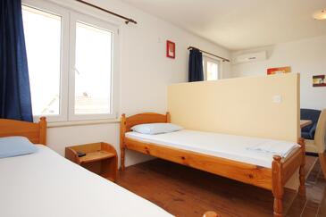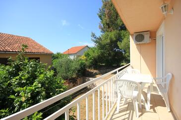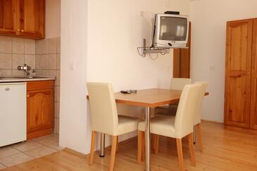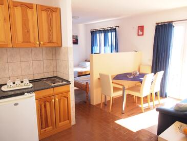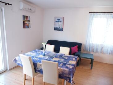Ferienwohnung bietet Platz für 7 Gäste. Die Betten sind in Schlafzimmern, die es 2 gibt, und in Wohnzimmer, innerhalb einer Gesamtfläche von 52m2, angeordnet. Die Gäste haben eine eigene Terrasse zur Verfügung, auf der sie in warmen Sommernächten genießen können. Es ist erlaubt, Speisen auf dem Gemeinschafts-Grill vorzubereiten.