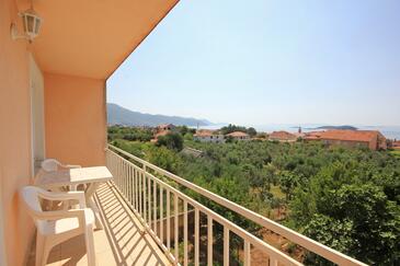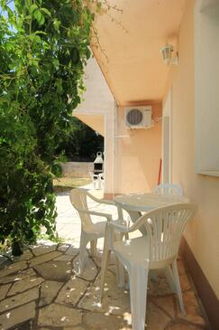 Ferienwohnung bietet Platz für 7 Gäste. Die Betten sind in Schlafzimmern, die es 2 gibt, und in Wohnzimmer, innerhalb einer Gesamtfläche von 52m2, angeordnet. Die Gäste haben eine eigene Terrasse zur Verfügung, auf der sie in warmen Sommernächten genießen können. Es ist erlaubt, Speisen auf dem Gemeinschafts-Grill vorzubereiten.