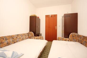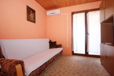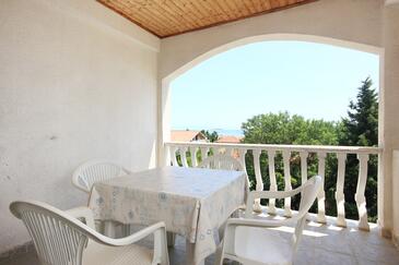 Ferienwohnung bietet Platz für 4 Gäste. Die Betten sind in Schlafzimmern, die es 2 gibt, innerhalb einer Gesamtfläche von 40m2, angeordnet. Die Gäste haben eine eigene Terrasse zur Verfügung, auf der sie in warmen Sommernächten genießen können. Es ist erlaubt, Speisen auf dem Gemeinschafts-Grill vorzubereiten.