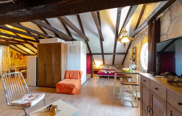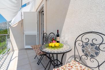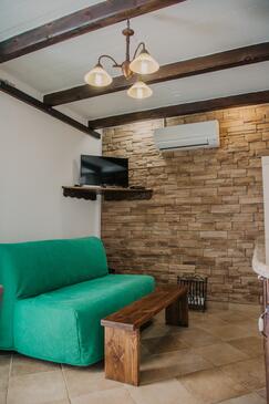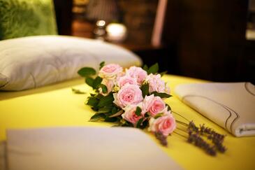 Ferienwohnung bietet Platz für 4 Gäste. Die Betten sind in Schlafzimmern, die es 1 gibt, und in Wohnzimmer, innerhalb einer Gesamtfläche von 33m2, angeordnet. Die Gäste haben eine eigene Terrasse zur Verfügung, auf der sie in warmen Sommernächten genießen können. Das Apartment bietet Meerblick. Es ist erlaubt, Speisen auf dem Gemeinschafts-Grill vorzubereiten. In der Unterkunftseinheit besteht die Möglichkeit des Mitbringens von Haustieren gegen Aufpreis. In der gebuchten Unterkunftseinheit zahlt man am Ort ein Depositum ( der Preis ist an der Internetseite angeführt ).