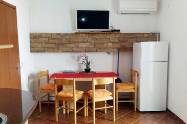 Ferienwohnung bietet Platz für 4 Gäste. Die Betten sind in Schlafzimmern, die es 1 gibt, und in Wohnzimmer, innerhalb einer Gesamtfläche von 33m2, angeordnet. Die Gäste haben eine eigene Terrasse zur Verfügung, auf der sie in warmen Sommernächten genießen können. Das Apartment bietet Meerblick. Es ist erlaubt, Speisen auf dem Gemeinschafts-Grill vorzubereiten. In der Unterkunftseinheit besteht die Möglichkeit des Mitbringens von Haustieren gegen Aufpreis. In der gebuchten Unterkunftseinheit zahlt man am Ort ein Depositum ( der Preis ist an der Internetseite angeführt ).