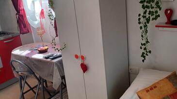 Ferienwohnung bietet Platz für 6 Gäste. Die Betten sind in Schlafzimmern, die es 2 gibt, und in Wohnzimmer, innerhalb einer Gesamtfläche von 62m2, angeordnet. Die Gäste haben eine eigene Terrasse zur Verfügung, auf der sie in warmen Sommernächten genießen können. Das Apartment bietet Meerblick. Es ist erlaubt, Speisen auf dem Gemeinschafts-Grill vorzubereiten. In der Unterkunftseinheit besteht die Möglichkeit des Mitbringens von Haustieren gegen Aufpreis.