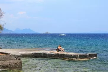 Ferienwohnung bietet Platz für 6 Gäste. Die Betten sind in Schlafzimmern, die es 2 gibt, und in Wohnzimmer, innerhalb einer Gesamtfläche von 62m2, angeordnet. Die Gäste haben eine eigene Terrasse zur Verfügung, auf der sie in warmen Sommernächten genießen können. Das Apartment bietet Meerblick. Es ist erlaubt, Speisen auf dem Gemeinschafts-Grill vorzubereiten. In der Unterkunftseinheit besteht die Möglichkeit des Mitbringens von Haustieren gegen Aufpreis.