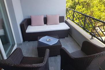 Ferienwohnung bietet Platz für 2 Gäste. Die Betten sind in Schlafzimmern, die es 1 gibt, innerhalb einer Gesamtfläche von 28m2, angeordnet. Die Gäste haben eine eigene Terrasse zur Verfügung, auf der sie in warmen Sommernächten genießen können.