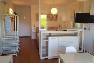 Ferienwohnung bietet Platz für 2 Gäste. Die Betten sind in Schlafzimmern, die es 1 gibt, innerhalb einer Gesamtfläche von 28m2, angeordnet. Die Gäste haben eine eigene Terrasse zur Verfügung, auf der sie in warmen Sommernächten genießen können.