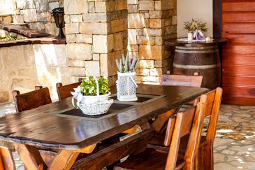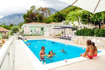 Haus bietet Platz für 14 Gäste. Die Betten sind in Schlafzimmern, die es 7 gibt, innerhalb einer Gesamtfläche von 329m2, angeordnet. Die Gäste haben eine eigene Terrasse zur Verfügung, auf der sie in warmen Sommernächten genießen können. Das Haus bietet Meerblick. Es ist erlaubt, Speisen auf dem Gemeinschafts-Grill vorzubereiten. Während ihres Aufenthalts können Gäste das gemeinsam zur Nutzung stehende Schwimmbad benutzen. Räume der gebuchten Unterkunftseinheit werden nicht in eine Ganze verbunden.