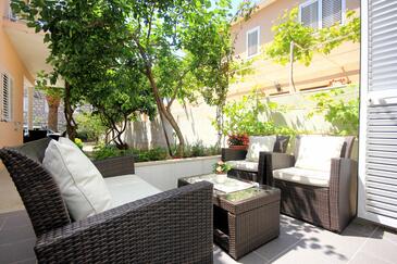 Ferienwohnung bietet Platz für 4 Gäste. Die Betten sind in Schlafzimmern, die es 2 gibt, innerhalb einer Gesamtfläche von 40m2, angeordnet. Die Gäste haben eine eigene Terrasse zur Verfügung, auf der sie in warmen Sommernächten genießen können. Es ist erlaubt, Speisen auf dem Gemeinschafts-Grill vorzubereiten. In der Unterkunftseinheit besteht die Möglichkeit des Mitbringens von Haustieren gegen Aufpreis.