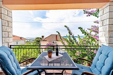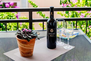 Ferienwohnung bietet Platz für 4 Gäste. Die Betten sind in Schlafzimmern, die es 2 gibt, innerhalb einer Gesamtfläche von 66m2, angeordnet. Die Gäste haben eine eigene Terrasse zur Verfügung, auf der sie in warmen Sommernächten genießen können. Das Apartment bietet Meerblick. Es ist erlaubt, Speisen auf dem Gemeinschafts-Grill vorzubereiten.