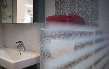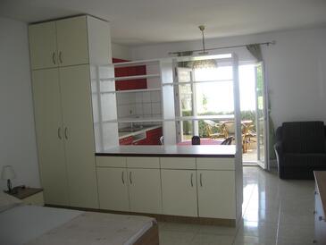 Ferienwohnung bietet Platz für 4 Gäste. Die Betten sind in Schlafzimmern, die es 2 gibt, innerhalb einer Gesamtfläche von 42m2, angeordnet. Die Gäste haben eine eigene Terrasse zur Verfügung, auf der sie in warmen Sommernächten genießen können. Das Apartment bietet Meerblick. Es ist erlaubt, Speisen auf dem Gemeinschafts-Grill vorzubereiten.