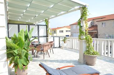 Ferienwohnung bietet Platz für 4 Gäste. Die Betten sind in Schlafzimmern, die es 1 gibt, und in Wohnzimmer, innerhalb einer Gesamtfläche von 30m2, angeordnet. Die Gäste haben eine eigene Terrasse zur Verfügung, auf der sie in warmen Sommernächten genießen können. Es ist erlaubt, Speisen auf dem Gemeinschafts-Grill vorzubereiten.