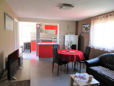 Ferienwohnung bietet Platz für 4 Gäste. Die Betten sind in Schlafzimmern, die es 2 gibt, innerhalb einer Gesamtfläche von 55m2, angeordnet. Die Gäste haben eine eigene Terrasse zur Verfügung, auf der sie in warmen Sommernächten genießen können. Das Apartment bietet Meerblick. Es ist erlaubt, Speisen auf dem Gemeinschafts-Grill vorzubereiten.