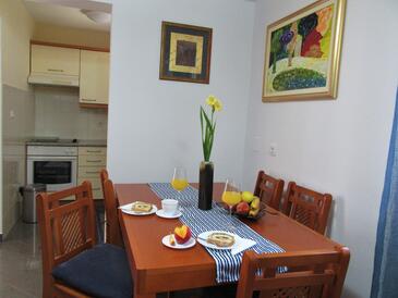 Ferienwohnung bietet Platz für 4 Gäste. Die Betten sind in Schlafzimmern, die es 2 gibt, innerhalb einer Gesamtfläche von 55m2, angeordnet. Die Gäste haben eine eigene Terrasse zur Verfügung, auf der sie in warmen Sommernächten genießen können. Das Apartment bietet Meerblick. Es ist erlaubt, Speisen auf dem Gemeinschafts-Grill vorzubereiten.