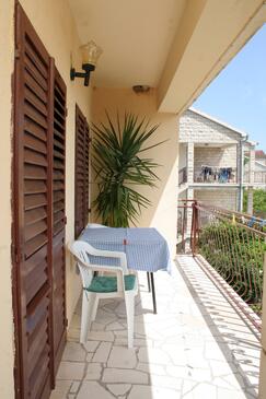 Ferienwohnung bietet Platz für 8 Gäste. Die Betten sind in Schlafzimmern, die es 3 gibt, innerhalb einer Gesamtfläche von 78m2, angeordnet. Die Gäste haben eine eigene Terrasse zur Verfügung, auf der sie in warmen Sommernächten genießen können. Das Apartment bietet Meerblick. Es ist erlaubt, Speisen auf dem Gemeinschafts-Grill vorzubereiten.