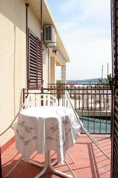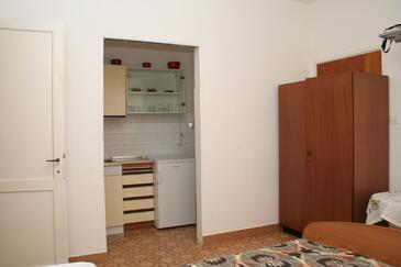 Ferienwohnung bietet Platz für 8 Gäste. Die Betten sind in Schlafzimmern, die es 3 gibt, innerhalb einer Gesamtfläche von 78m2, angeordnet. Die Gäste haben eine eigene Terrasse zur Verfügung, auf der sie in warmen Sommernächten genießen können. Das Apartment bietet Meerblick. Es ist erlaubt, Speisen auf dem Gemeinschafts-Grill vorzubereiten.