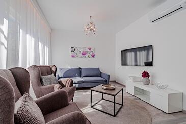 Ferienwohnung bietet Platz für 4 Gäste. Die Betten sind in Schlafzimmern, die es 1 gibt, und in Wohnzimmer, innerhalb einer Gesamtfläche von 41m2, angeordnet. Die Gäste haben eine eigene Terrasse zur Verfügung, auf der sie in warmen Sommernächten genießen können. Das Apartment bietet Meerblick. Es ist erlaubt, Speisen auf dem Gemeinschafts-Grill vorzubereiten.