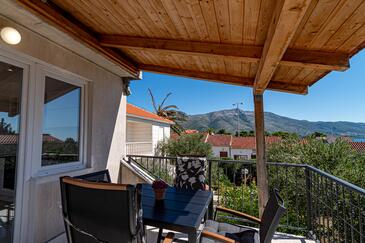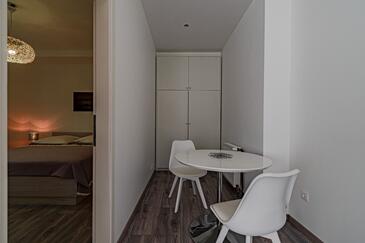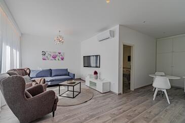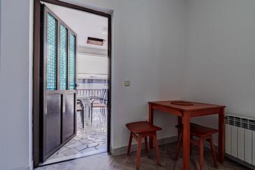 Ferienwohnung bietet Platz für 4 Gäste. Die Betten sind in Schlafzimmern, die es 1 gibt, und in Wohnzimmer, innerhalb einer Gesamtfläche von 41m2, angeordnet. Die Gäste haben eine eigene Terrasse zur Verfügung, auf der sie in warmen Sommernächten genießen können. Das Apartment bietet Meerblick. Es ist erlaubt, Speisen auf dem Gemeinschafts-Grill vorzubereiten.
