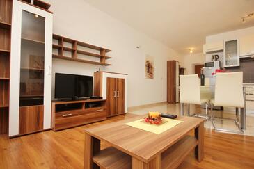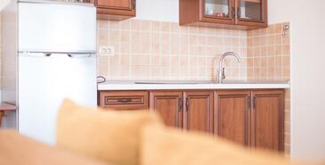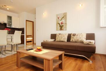 Ferienwohnung bietet Platz für 3 Gäste. Die Betten sind in Schlafzimmern, die es 1 gibt, und in Wohnzimmer, innerhalb einer Gesamtfläche von 40m2, angeordnet. Die Gäste haben eine eigene Terrasse zur Verfügung, auf der sie in warmen Sommernächten genießen können. Das Apartment bietet Meerblick. Es ist erlaubt, Speisen auf dem Gemeinschafts-Grill vorzubereiten.