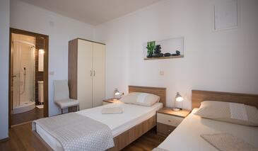Ferienwohnung bietet Platz für 3 Gäste. Die Betten sind in Schlafzimmern, die es 1 gibt, und in Wohnzimmer, innerhalb einer Gesamtfläche von 40m2, angeordnet. Die Gäste haben eine eigene Terrasse zur Verfügung, auf der sie in warmen Sommernächten genießen können. Das Apartment bietet Meerblick. Es ist erlaubt, Speisen auf dem Gemeinschafts-Grill vorzubereiten.