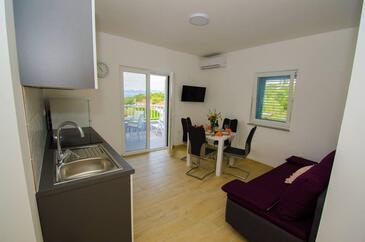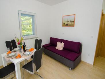 Ferienwohnung bietet Platz für 4 Gäste. Die Betten sind in Schlafzimmern, die es 1 gibt, und in Wohnzimmer, innerhalb einer Gesamtfläche von 40m2, angeordnet. Die Gäste haben eine eigene Terrasse zur Verfügung, auf der sie in warmen Sommernächten genießen können. Das Apartment bietet Meerblick. Für vollen Genuss und Entspannung gibt es einen privaten Grill für Gäste dieser Unterkunft.