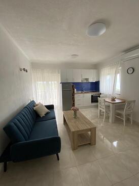 Ferienwohnung bietet Platz für 3 Gäste. Die Betten sind in Schlafzimmern, die es 1 gibt, und in Wohnzimmer, innerhalb einer Gesamtfläche von 40m2, angeordnet. Die Gäste haben einen eigenen Balkon zur Verfügung, auf der sie in warmen Sommernächten genießen können. Das Apartment bietet Meerblick. Es ist erlaubt, Speisen auf dem Gemeinschafts-Grill vorzubereiten.