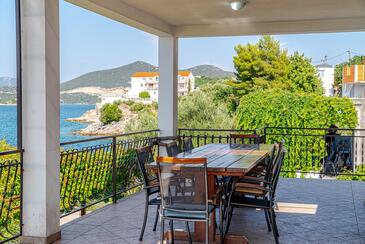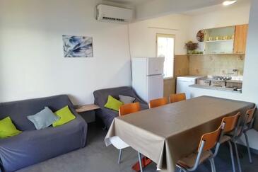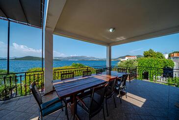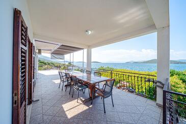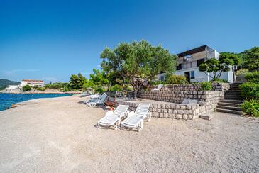 Ferienwohnung bietet Platz für 8 Gäste. Die Betten sind in Schlafzimmern, die es 4 gibt, innerhalb einer Gesamtfläche von 93m2, angeordnet. Die Gäste haben eine eigene Terrasse zur Verfügung, auf der sie in warmen Sommernächten genießen können. Das Apartment bietet Meerblick. Es ist erlaubt, Speisen auf dem Gemeinschafts-Grill vorzubereiten.