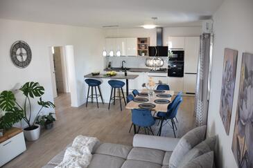 Haus bietet Platz für 4 Gäste. Die Betten sind in Schlafzimmern, die es 2 gibt, innerhalb einer Gesamtfläche von 80m2, angeordnet. Die Gäste haben eine eigene Terrasse zur Verfügung, auf der sie in warmen Sommernächten genießen können. Das Haus bietet Meerblick. Für vollen Genuss und Entspannung gibt es einen privaten Grill für Gäste dieser Unterkunft.