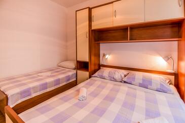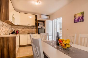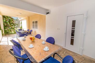 Ferienwohnung bietet Platz für 11 Gäste. Die Betten sind in Schlafzimmern, die es 5 gibt, innerhalb einer Gesamtfläche von 92m2, angeordnet. Die Gäste haben eine eigene Terrasse zur Verfügung, auf der sie in warmen Sommernächten genießen können. Es ist erlaubt, Speisen auf dem Gemeinschafts-Grill vorzubereiten.
