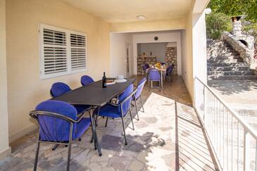 Ferienwohnung bietet Platz für 11 Gäste. Die Betten sind in Schlafzimmern, die es 5 gibt, innerhalb einer Gesamtfläche von 92m2, angeordnet. Die Gäste haben eine eigene Terrasse zur Verfügung, auf der sie in warmen Sommernächten genießen können. Es ist erlaubt, Speisen auf dem Gemeinschafts-Grill vorzubereiten.